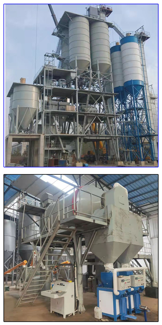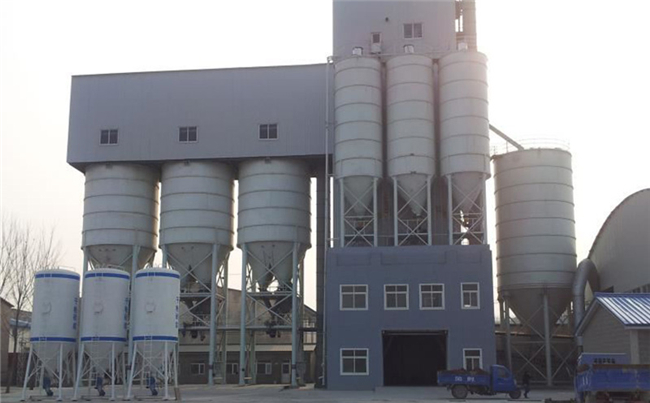主要由提升輸送系統(tǒng)、計量配料系統(tǒng)、混合系統(tǒng)、儲料系統(tǒng)、包裝系統(tǒng)、除塵系統(tǒng)、控制系統(tǒng)、鋼架平臺等組成。