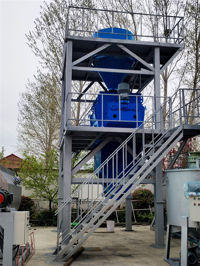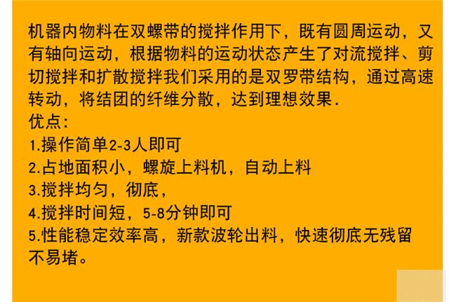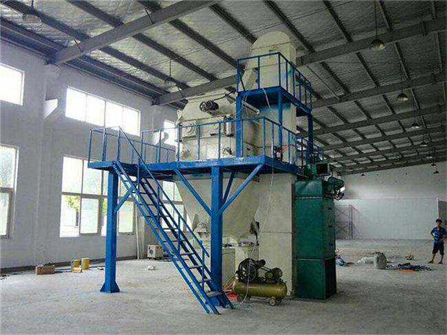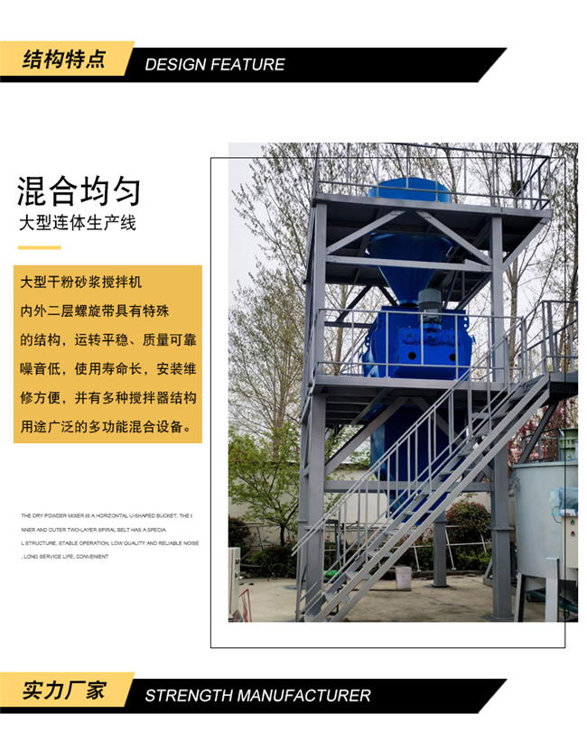 混合系統(tǒng):可配套雙軸無重力漿葉式混合機(jī)、犁刀混合機(jī)混合機(jī),具有混合速度快、混合精度高等優(yōu)點(diǎn),該機(jī)可攪拌1:10,00甚至更高的極限混合比。在攪拌漿葉合理的推動速度下,使聚苯顆粒、膠凝材料和化學(xué)添加劑等比重、粒度差異較大的物料,處于瞬間失重狀態(tài),在拌筒內(nèi)形成全方位對流、擴(kuò)散和相互剪切,快速溫和地達(dá)到混合均勻的效果,不會產(chǎn)生偏析和破壞物料的原始狀態(tài),確保了砂漿的保溫系數(shù)不會因保溫原料的形狀破壞而降低,確保了產(chǎn)品的保溫效果。